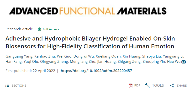华科吴豪团队开发用于人体情绪识别的表皮混合电子系统