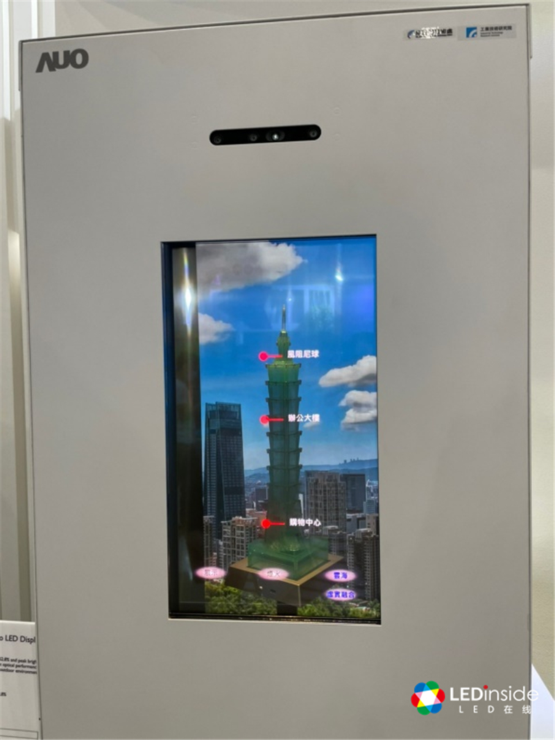 第二个市场焦点则为车用显示,因应高动态对比(HDR)、区域调光(Local Dimming)、广色域等需求,因此产品趋势朝向直下式背光发展,现场展示出384区的车用显示产品,产品表现相当惊艳。同时现场也展示60%透明显示屏,潜在应用市场为抬头显示器或车窗显示。