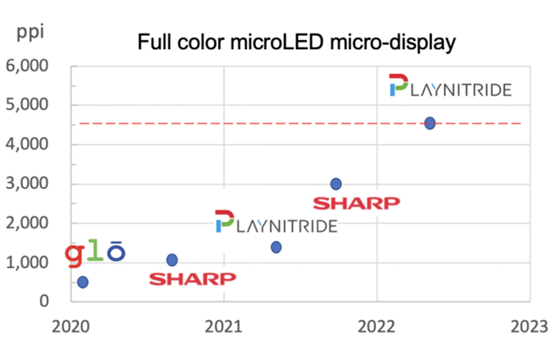 值得注意的是,展场中有一独立展示区,展出0.49英寸FHD分辨率,规格领先业界高达4,536 ppi,以蓝光Micro LED搭配色转换技术而成的高亮度全彩μ-PixeLED显示器,实现亲身体验Micro LED扩增实境眼镜的未来潜力。