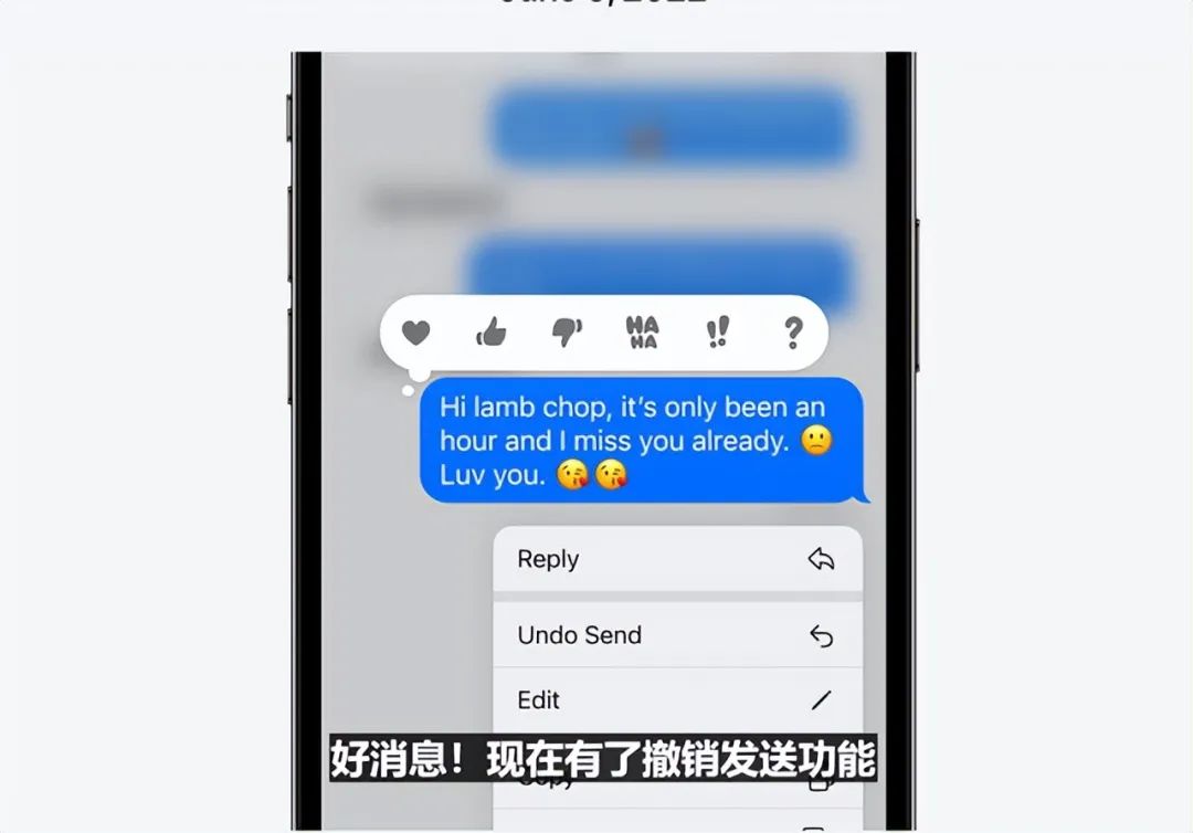 iOS 16还对于短信APP进行了更新,用户可以进行撤销、更改等一系列的操作,进行更加精确的内容表达,并且进行更好的共享。