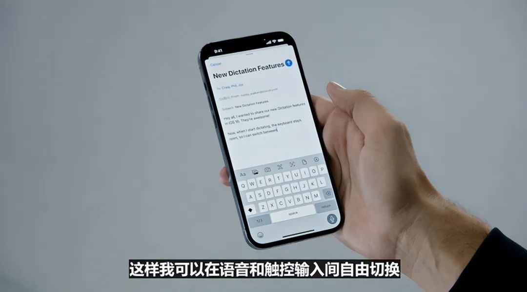 iOS 16还对听写功能进行了改进,在使用苹果系统自带键盘时,可以在语音输入的同时进行到键盘内容的键入,并且还可以进行点选进行语音输入的替换,增加了口述输入的可用性。
