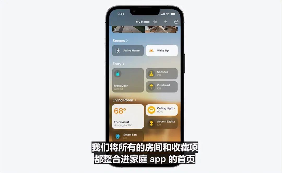 除了CarPlay 车载功能,iOS 16也针对于智能家庭进行了一系列的升级优化,优化了家庭APP内的界面内容显示,让用户可以更加方便的进行操作,并且还加入了对Matter 这一全新标准的支持,Matter是包括苹果、谷歌、亚马逊在内的一系列厂家推出的智能家居标准协议,具有更安全、更广泛的兼容性。