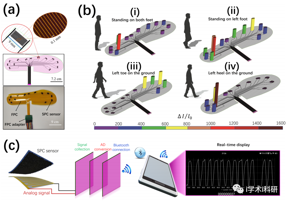 Figure 7. SPC sensor-based plantar pressure monitoring FPC insoles and wireless sensing performance.