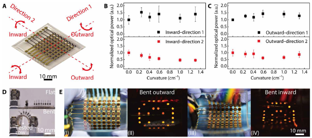 图5. 3D打印柔性OLED显示器的弯曲特性