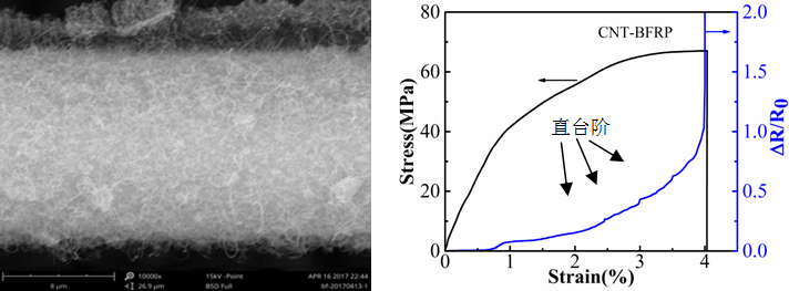 图2含碳纳米管涂层的玄武岩纤维及其纤维增强复合材料的压阻效应