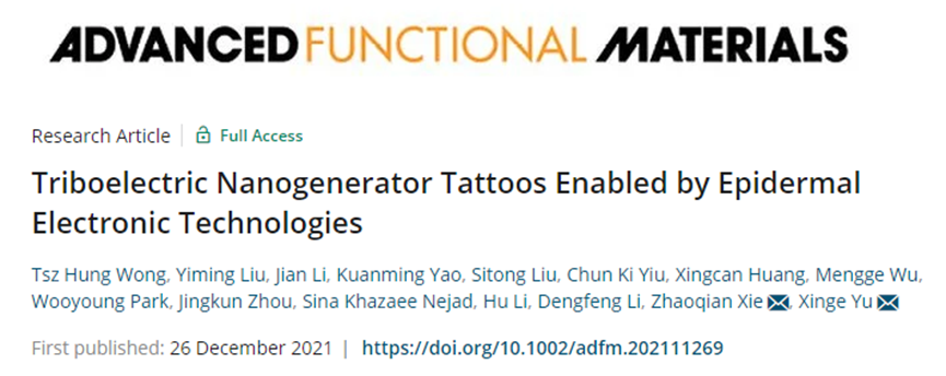 香港城大于欣格/大连理工解兆谦《AFM》:纹身能发电?表皮电子技术实现能发电的电子纹身!