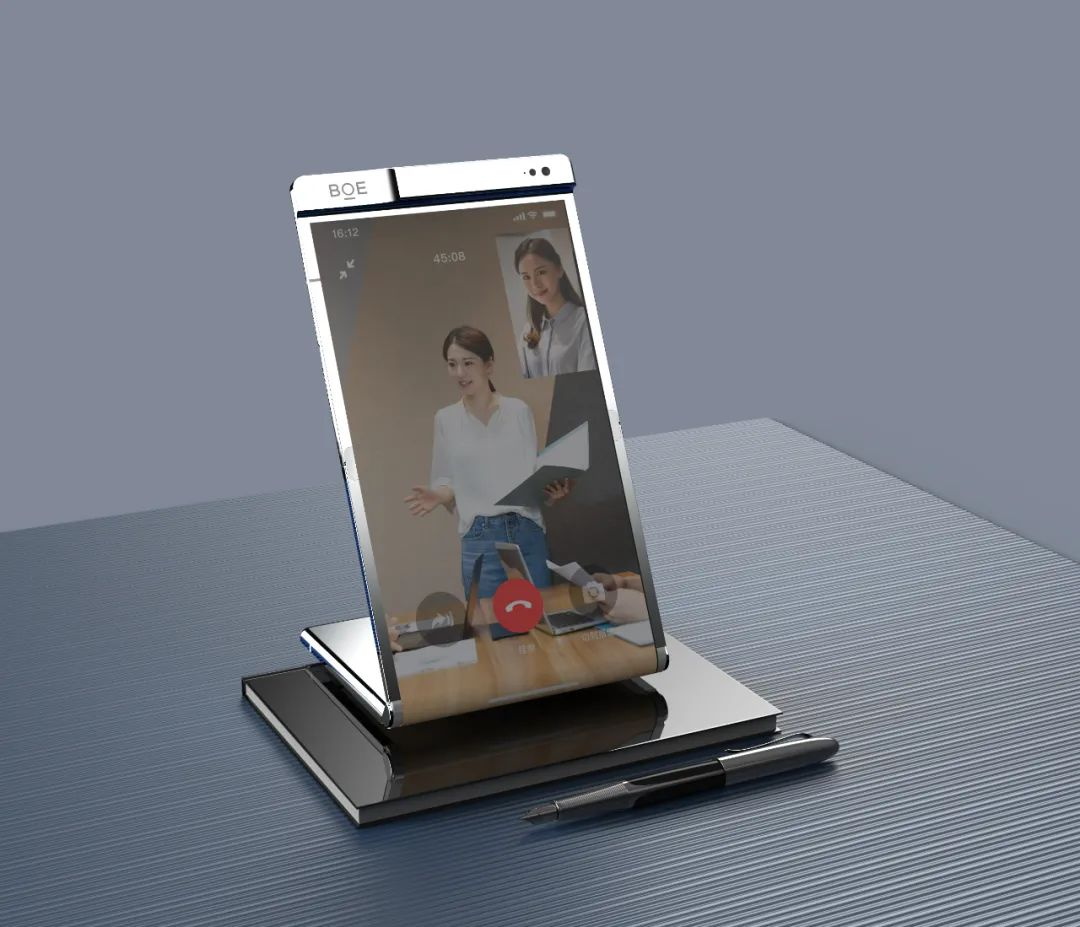 当对柔性屏进行第一段收纳时(仅外折),横向工作平台可轻松变身为立式会议和视频通话平台,商务办公随心所欲;