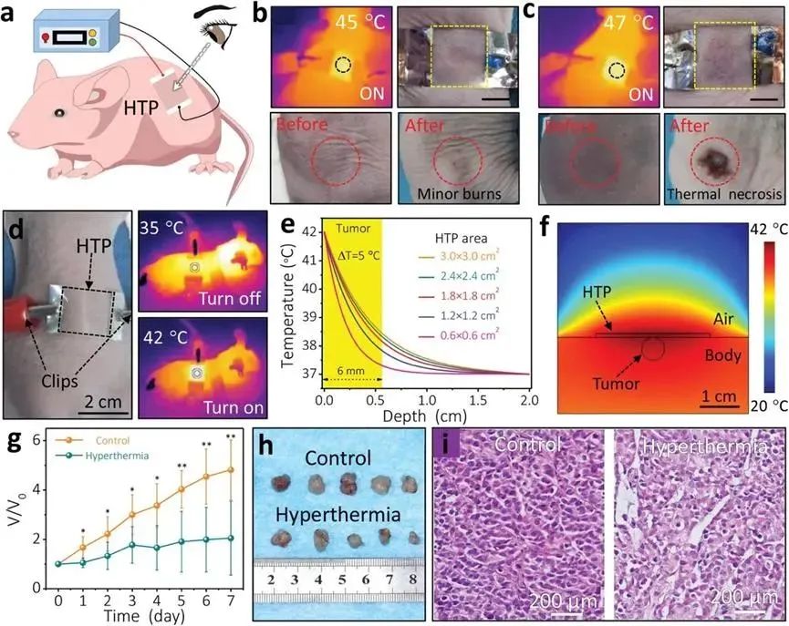 几个世纪以来,肿瘤一直是威胁人类健康的主要疾病之一。与传统基于手术、化学疗法、放射疗法和生物疗法的肿瘤治疗方法相比,热疗具有安全、无创、温和、副作用小等特点。可穿戴型热疗技术能够在不干扰日常活动的情况下进行高质量的肿瘤治疗,极具临床应用价值和社会意义。但现有热疗设备存在几个关键缺陷,使得热疗设备在临床实践中的广泛应用受到阻碍。一方面,传统的热疗热敷装置体积较大或非柔性,使得热疗装置难以与人体皮肤紧密贴合,导致热能传递效率有限,肿瘤部位局部温度难以控制,最终造成治疗效果大打折扣。另一方面,其非透明性阻碍了医护人员对患者皮肤的实时观察、在线检测和连续跟踪,特别是对热不敏感的特殊体质和老年患者,极有可能导致皮肤灼伤。