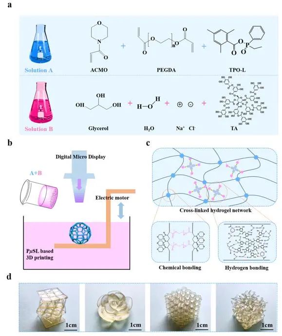 面投影微立体光刻技术(摩方精密,nanoArch S/P140原理及水凝胶材料设计,利用共价键交联和氢键网络结合优化水凝胶性能
