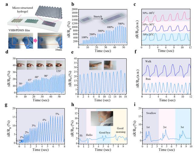 基于面投影微立体光刻技术加工跨尺度结构的水凝胶制备高灵敏度的应变传感器,用于监测宽范围的人体运动信号